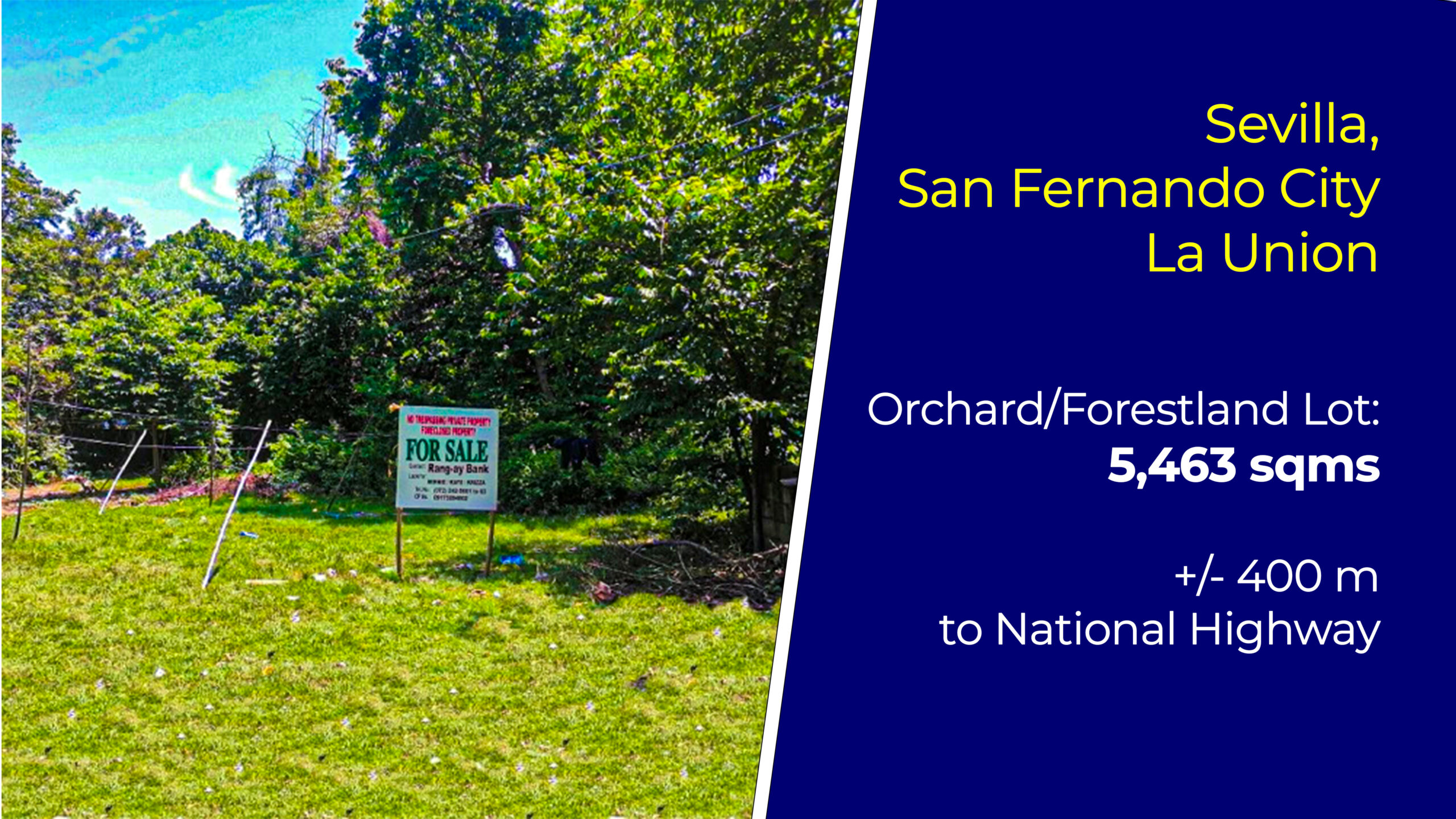DISCLAIMER: Valuation of Properties are subject to general economic conditions and setting. Therefore, prevailing Selling Price is not restrictive, conclusive and obligatory upon the management. PRICES MAY BE CHANGED AT ANY TIME WITHOUT FURTHER NOTICE. Any BID presented and accepted for processing is still subject to the FINAL APPROVAL of the Board of Directors of Rang-ay Bank.